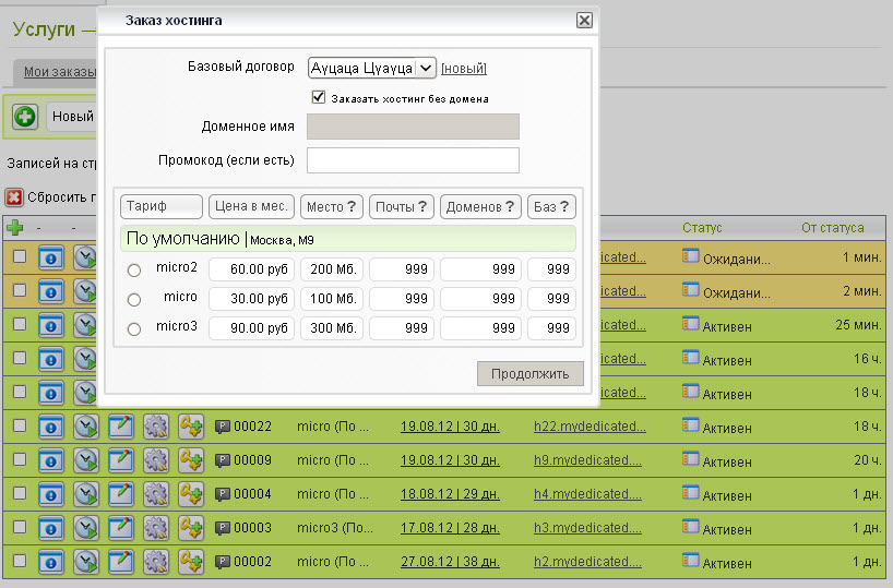 а дальше я поплыл. пока сделал что можно выбрать оплачиваемый любой сервис/любой тариф (как у бонусов), и всё это действует на такую же схему - любой сервис/любой тариф (как у бонусов).